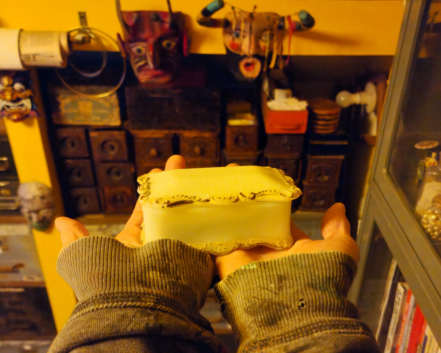 In this life I am ache and architecture: scaffolding around an invisible center of electricity. But as a trinket dish I will become a sanctuary for quiet gestures, a field for minute offerings: a shallow altar to the ostensibly trivial things that somehow outlast us all.